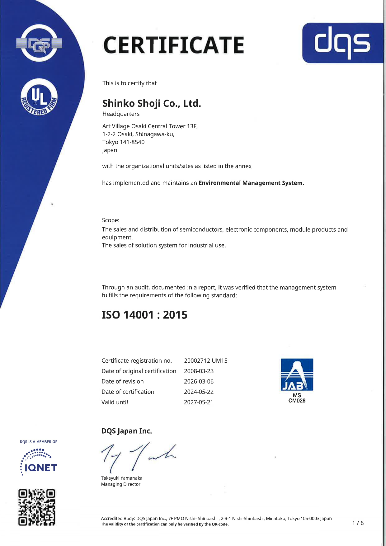 Our Group has obtained ISO14001 certification, an international standard for environmental management systems, for all of our domestic business locations.
